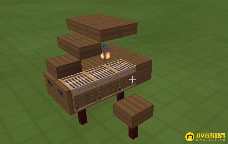 3、按照下图,在钢琴的上面搭建成阶梯状。再放一个灯装饰一下。