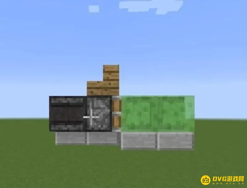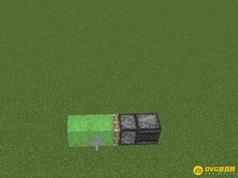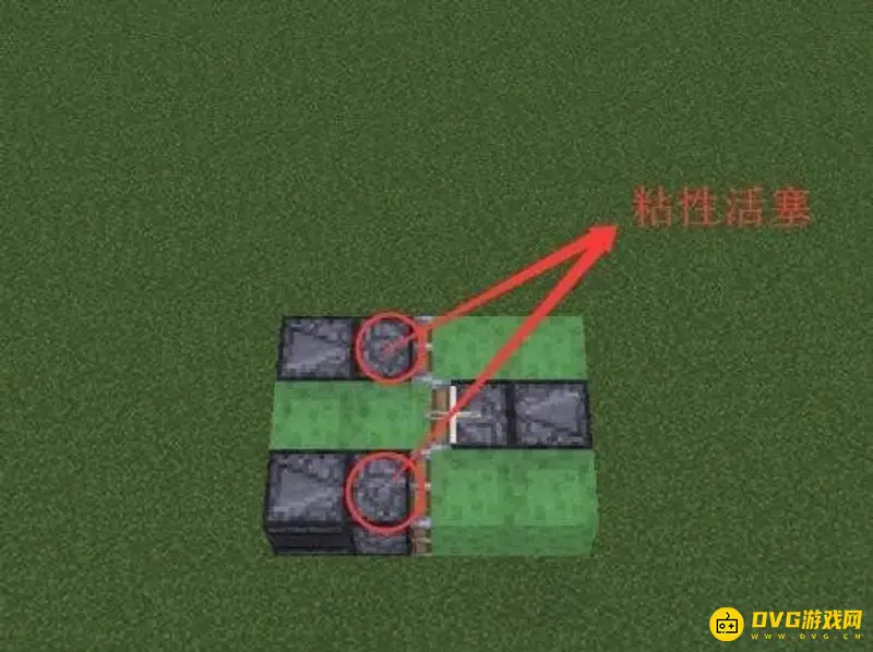 1、首先确定好高度后,放置一个活塞。活塞的前方放两个粘液块。