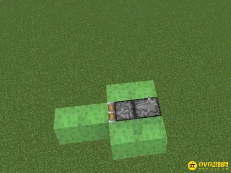 4、这两个粘液块的前方分别放两个粘性活塞,粘性活塞后面放两个侦测器。