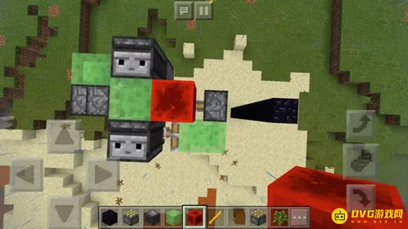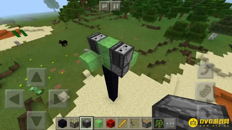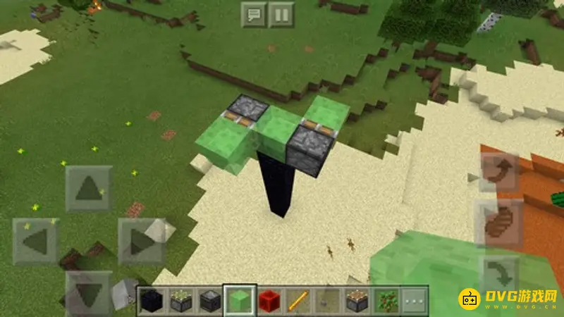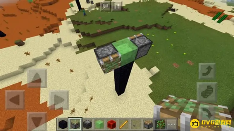 1.首先找个空旷的地方,用黑曜石方块搭个支柱,然后放上粘液块。