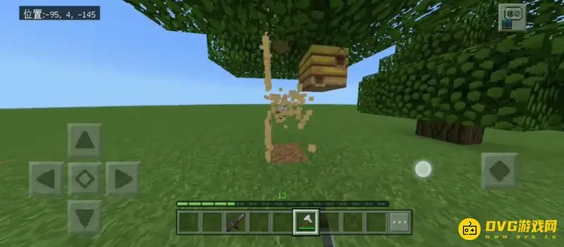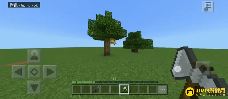注意砍树用斧头,斧头是用来砍所有木质方块的,用斧头来砍木质方块效率极高。下面可以看一下效果。