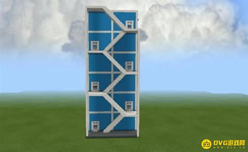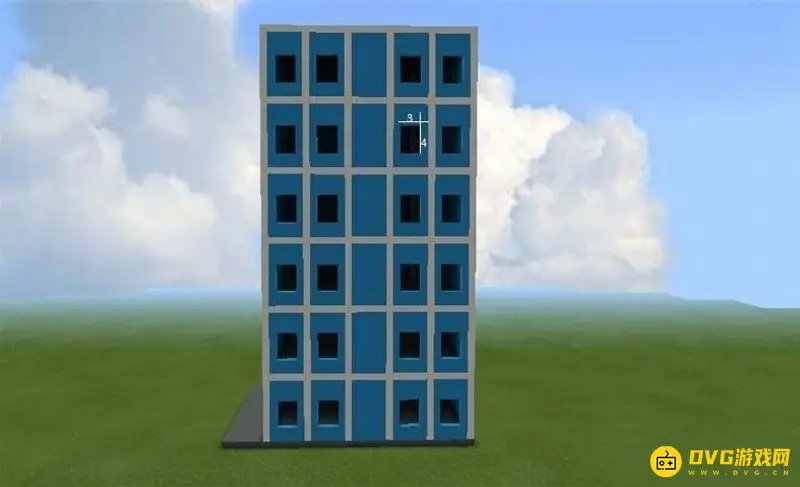 6.前面开凿掏空,每扇空窗面积为3×4格,每层地板向上空2格开始凿空窗。