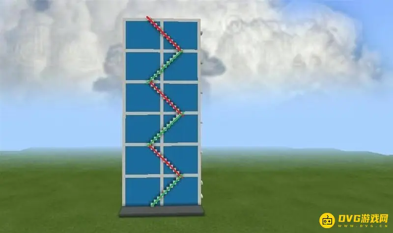 10.如何搭建楼梯!做了个示范:红线为左倾斜楼梯,绿线为右倾斜楼梯。