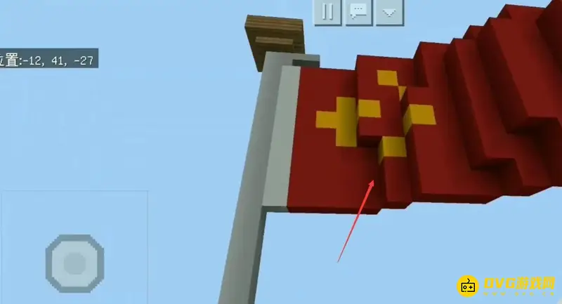 5、然后往右边填充方块,注意黄色方块的位置。经过一番努力,这面五星红旗做好了,迎风飘扬。注意:可以营造出一种层次感,感觉旗帜在飘,旗帜最好还是以周围景物为比例尺来制作,否则太大了十分违和,太小了让人看不见。