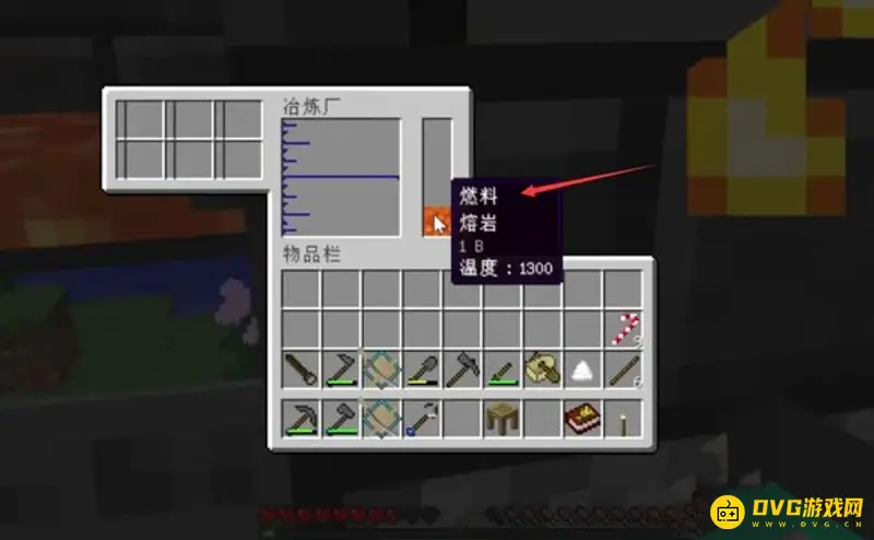 融化铁矿,放入燃料提高冶炼炉的温度,可快速融化铁矿。