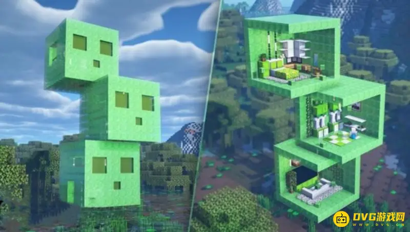 5、史莱姆房间。不过房间造价颇高,需要大量“绿宝石块”。三个体型相似的史莱姆搭建而成,史莱姆本身就属于标准的“火柴盒”造型,简单易上手,要看又实用,三层空间足够使用到游戏中后期了!