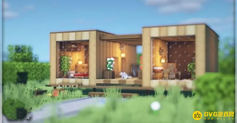 6、海边小屋。最后来看一下这个简约型的海边小屋,适合单人或者双人生存的时候搭建,两件普通的不能再普通的房间,中间增加一个连廊,再加上一些细微的装饰,一个“海边小屋”,就搭建完成了,房间虽小的但却很有感觉,一个人居住在一个“世外桃源”之地,欣赏着海边的美景。