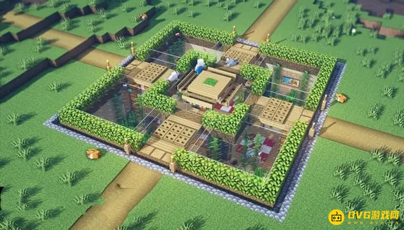 2、仓库房。接下来就是这个“仓库”了。适合在平原搭建基地的玩家,基地刚刚好可以把院子分为四份,每一个角落都可以安排不同功能的建筑,怪物的掉落、植物的掉落、村民的交易等,收集到的物品,都能第一时间回到中间的这个“地下仓库”,进行分类存储,到达游戏中后期以后,更是可以制作一个“自动分类系统”,来更加便捷的管理自己的物品。