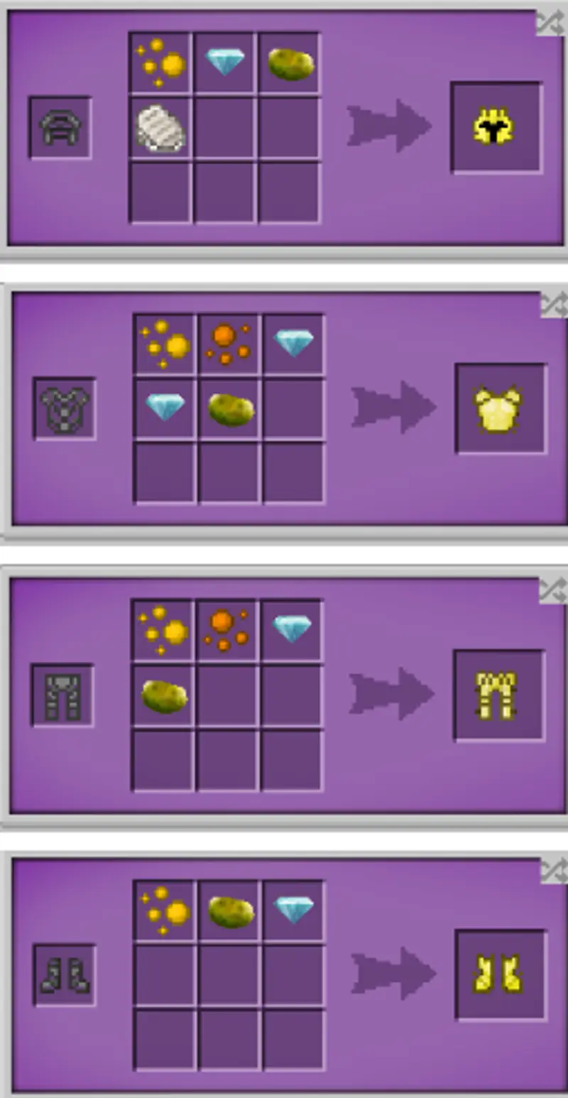 三、收集以上材料的过程中顺便收集点毒马铃薯和钻石。然后就可以合成“金色削弱套”。