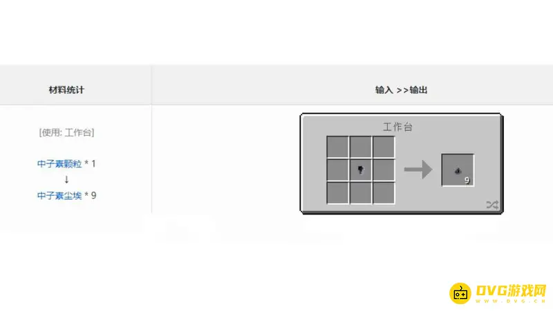 我的世界中子素尘埃是挂机产生的,挂机场所是中子态素收集器。玩家将中子态素收集器放在地上,打开以后,每六分钟产生一颗中子素尘埃,中子素尘埃可以在工作台合成中子素颗粒,比例是九比一。