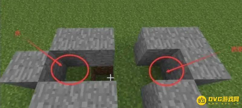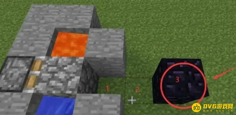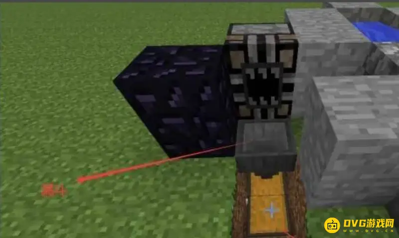 3.将一个黑曜石放在缺口旁边,这个黑曜石的作用就是为了防止石块推得太远。