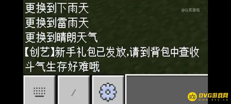 2.然后再按一下回车,把这个代码发送出去,你就可以获得一个新手礼包,可以在背包中查看。