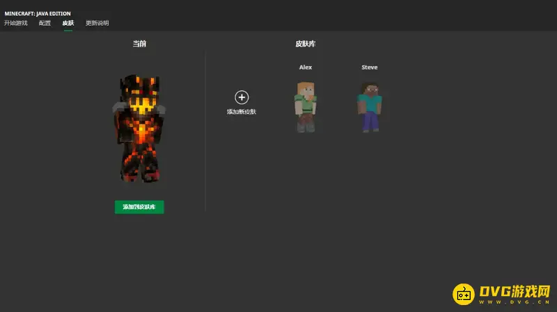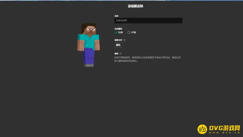 2、来到皮肤设置界面,我们可以看见Steve和Alex两款基础皮肤,此外我们还可以看见添加新皮肤选项,我们点击它。