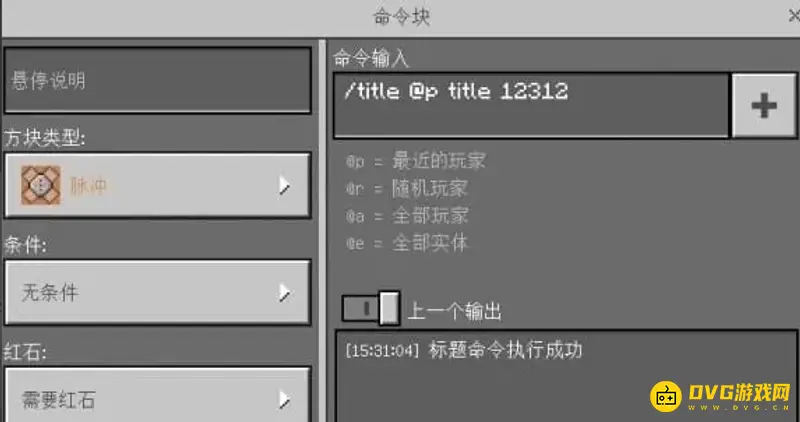 1.屏幕显示文字的指令是/title @P title,进入游戏,进入命令设置指令界面,然后在指令界面输入相应的代码。