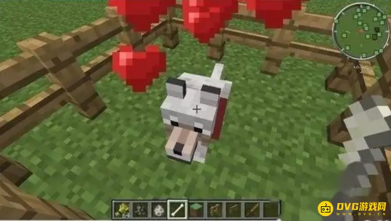 2.只需要把骨头对折它用右键就可以把它驯化了,驯化它的骨头是不定量的,所以你需要多喂几次,直到他头上冒出爱心为止。