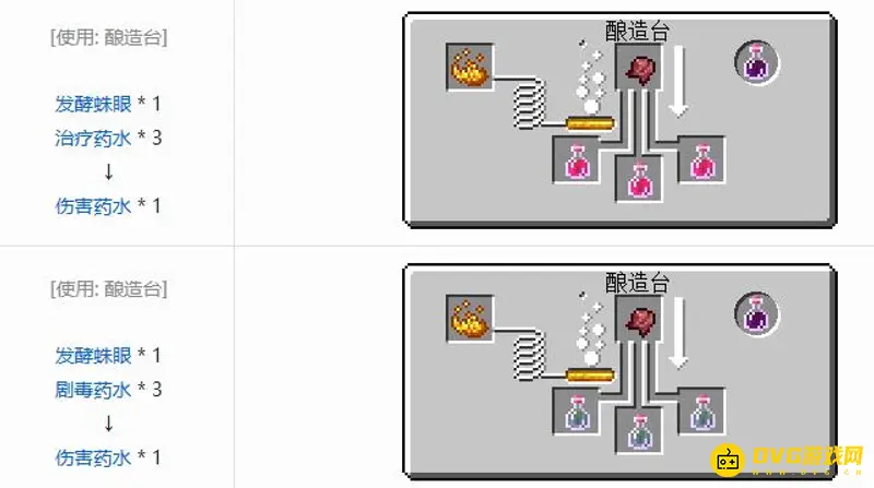 2,而伤害药水需要发酵蜘蛛眼加上治疗药水或者剧毒药水酿造。