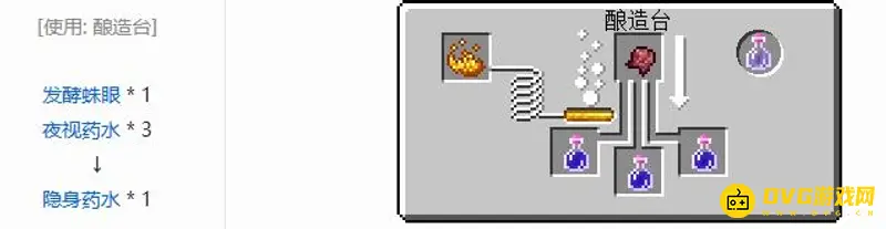 4,隐身药水需要发酵蜘蛛眼加上夜视药水酿造出来。