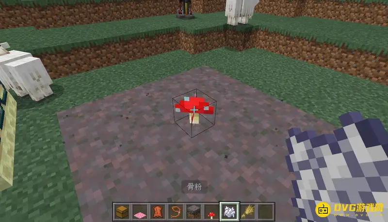 1,首先我们需要找到一个蘑菇,然后用骨粉右键点击蘑菇。