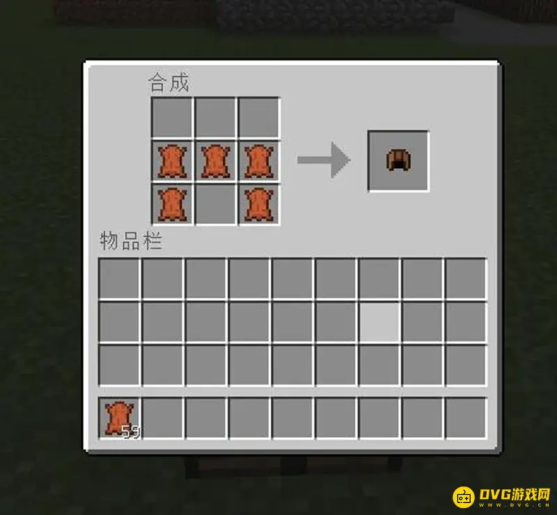 3.将皮革按照如图所示:【皮革】【皮革】【皮革】【皮革】【空】【皮革】放在工作台中就可以合成皮革帽子了。