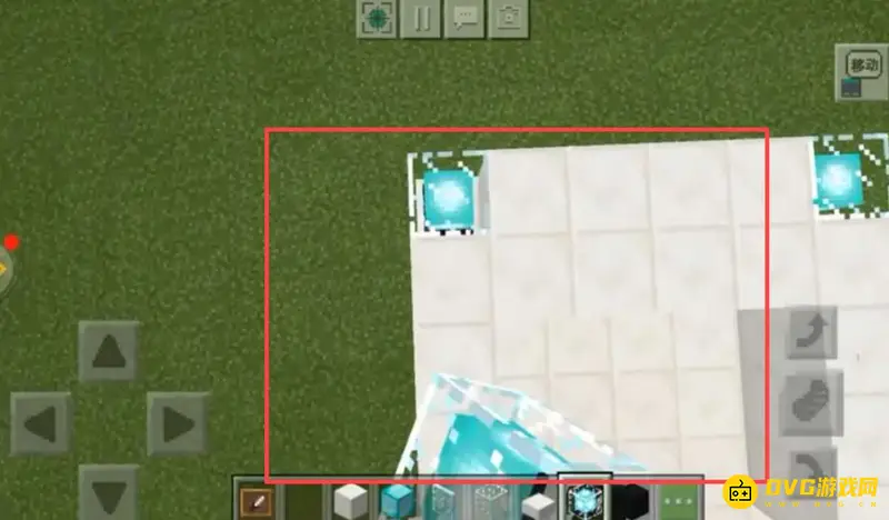 2、用石英台搭建底座,在黑色羊毛上放置展示框,四个角放置信标当做车灯,如下图所示: