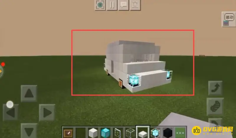 3、搭建汽车身体部分,分别用玻璃当做车窗,放置铁门,最后在车内放上床和其他装饰品,这样车就做好了,玩家可以尝试将 车启动驾驶向远方,图片如下: