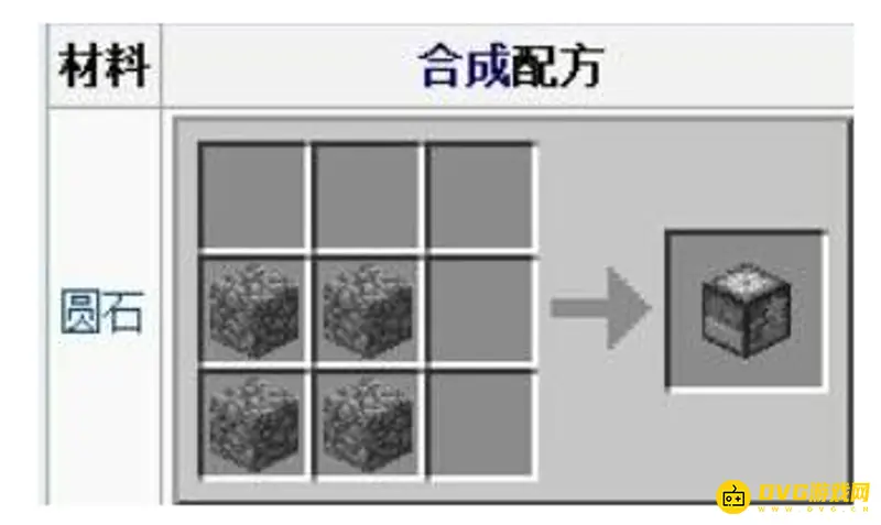 1、在我的世界中,切石机可以将各类石头方块进行整制,整制后可以获得各类其他石制物品,切石机通过4个圆石即可制成,如下图所示。