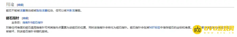 磁石可以用于重置指南针的指针方向,对着任何维度的磁石使用指南针,会将其转化为磁石指针,磁石指针会永远指向磁石的位置,除非传送到其他维度或磁石被破坏。