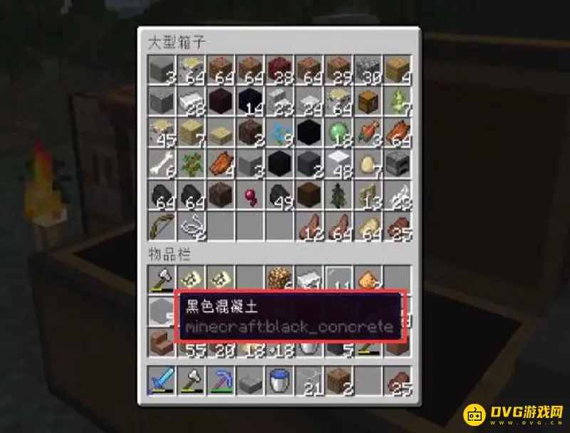 黑色混凝土英文id是:black_concrete,获得方式:首先合成黑色混凝土粉末,然后把混凝土粉末放在水的旁边就可以变成混凝土,最后拿镐子把混凝土挖下来就可以获得黑色混凝土了。