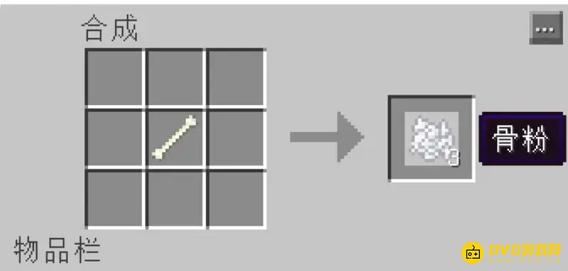 我们将骨头放在工作台里,可以获得骨粉。一个骨头可以分成3个骨粉。