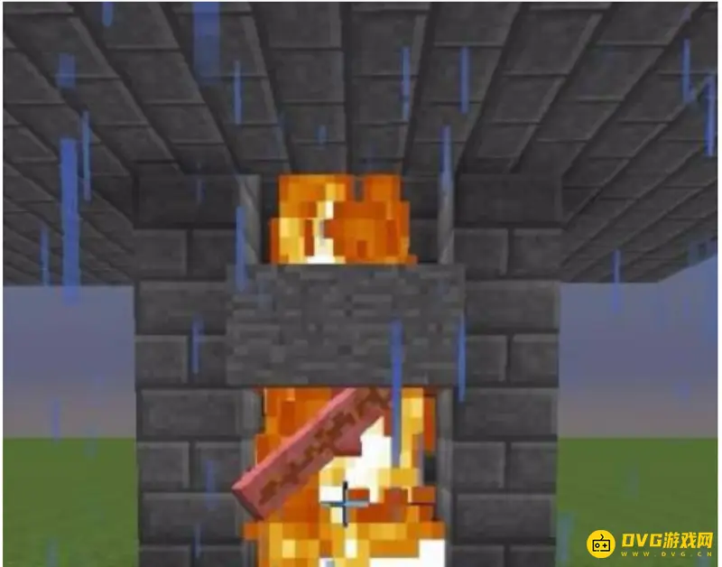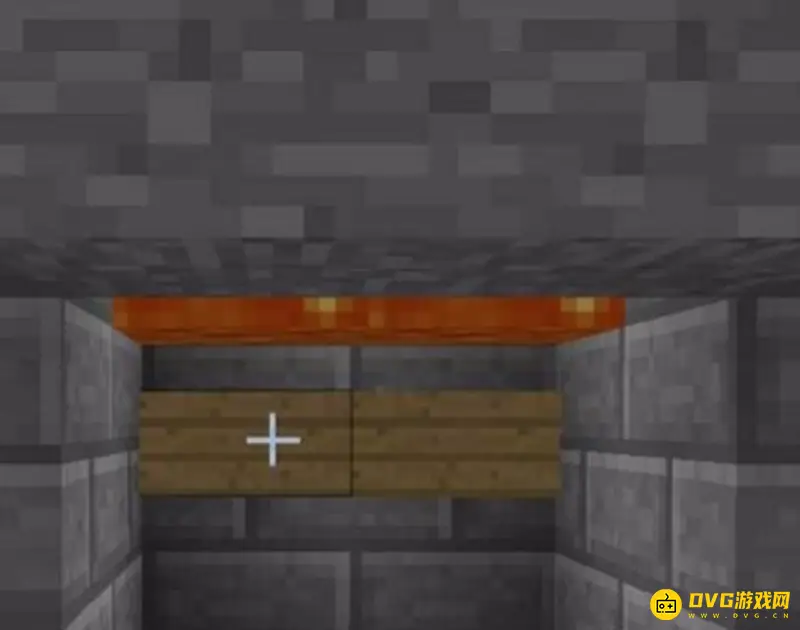 在木牌上面放1桶岩浆。岩浆会固定在那格。不会流下来,被木牌挡住了。