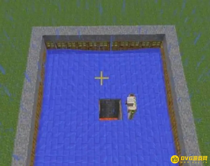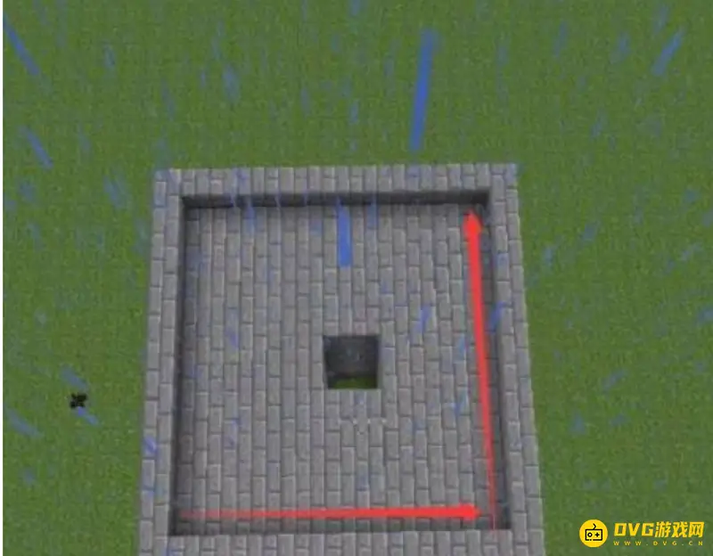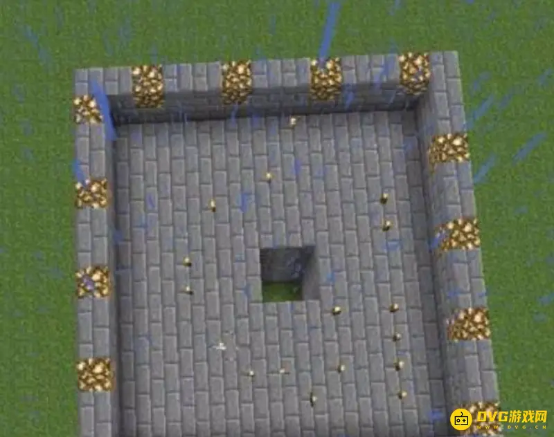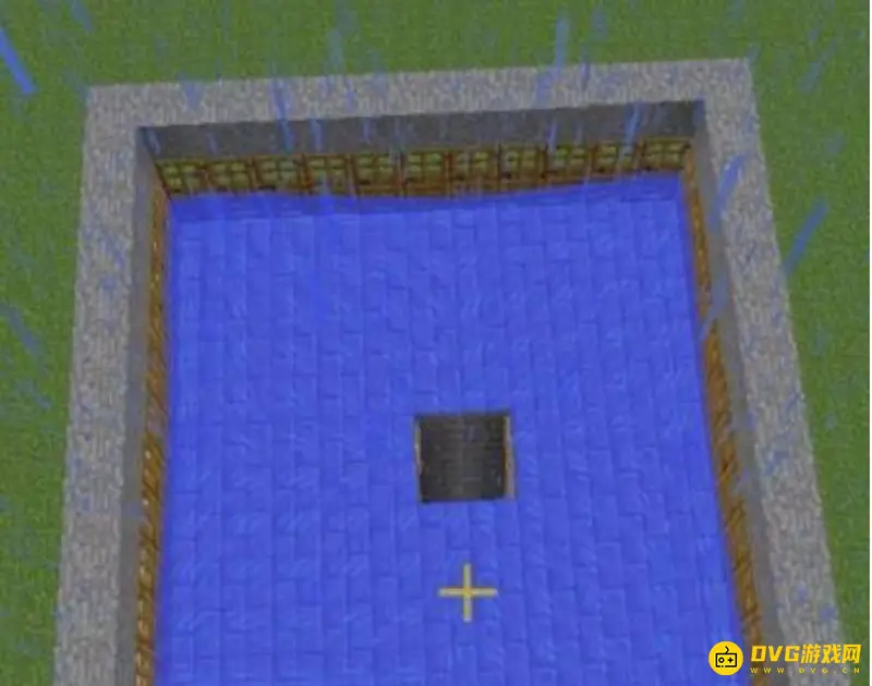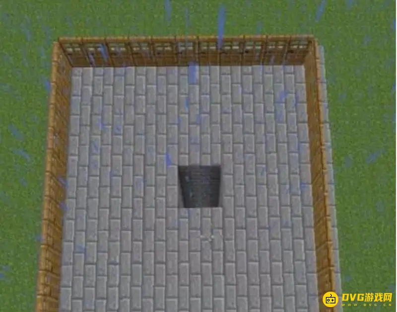水流会汇集到中间位置。但不会流下去,被木牌挡住了。然后门的上面再围一圈石头。
