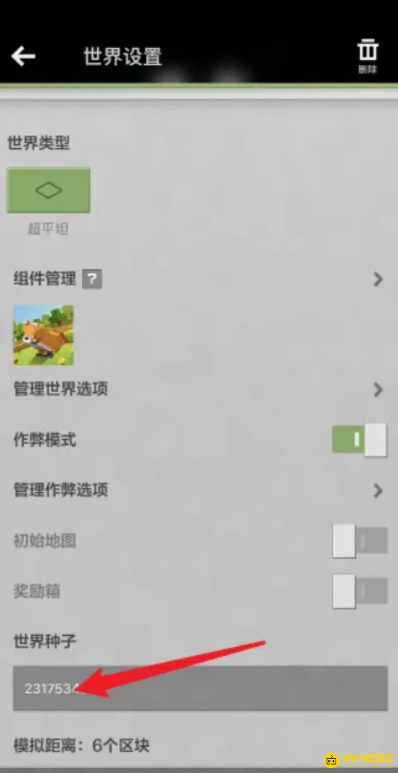 在地图详情界面点击设置选项,在设置列表查看种子编号。