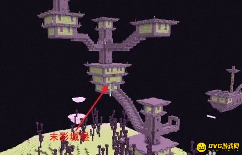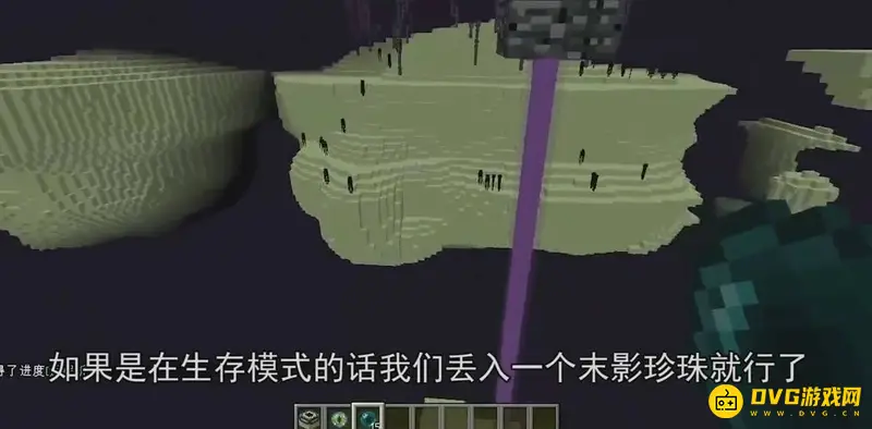 5、在生存模式中丢一个末影珍珠即可进门,跟着末地植物找到末地船。