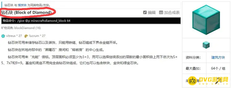 2,然后就可以在界面左上角发现,钻石块的英文名是Block of Diamond。