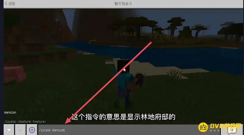 指令是/locate mansion。玩家在游戏中按回车键,然后再输入指令/locate mansion,在游戏的左上方会显示林地府邸的具体坐标。