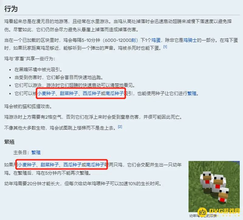 在我的世界这款游戏里,鸡是一种会下蛋的友好生物。对于鸡的食物,我们可以用小麦种子、甜菜种子、西瓜种子或南瓜种子进行喂养,喂两只鸡的话它们会交配并生出一只幼年鸡。在繁殖后,鸡在5分钟内不能再次繁殖。