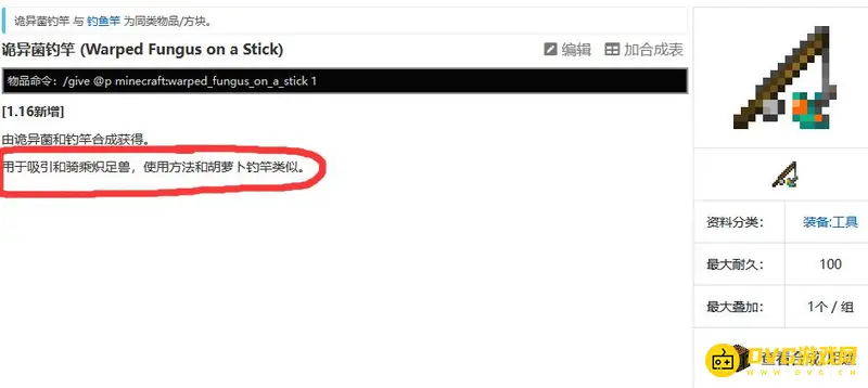 诡异真菌钓鱼竿可以用来吸引和骑乘炽足兽。