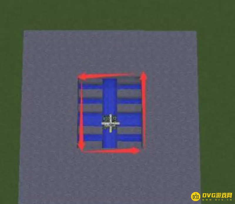 6.在横向的尽头空出一个2X2的区域,并且两边向外延伸10格围起来,中间区域为8格的距离。