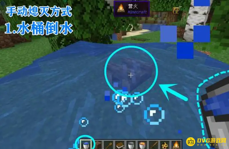 使用投掷水瓶,拥有和水桶一样的效果!对着营火直接“当头”扔上去,可以使其熄灭。