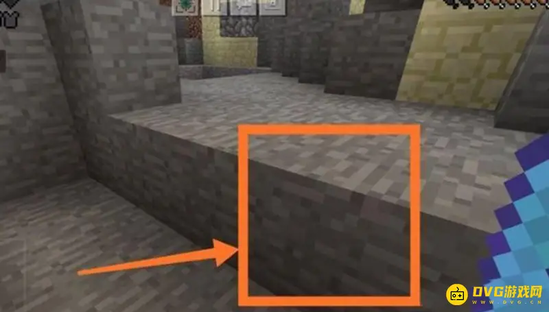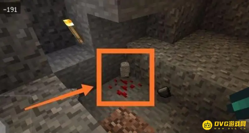 5、来到矿洞底下,用铁镐来挖掘出红石石块。