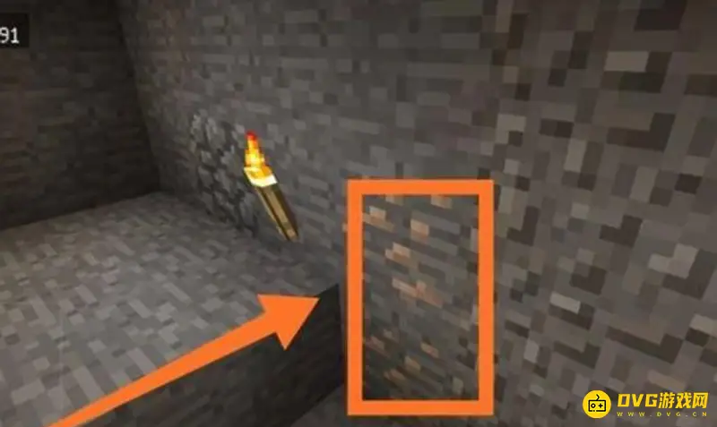 4、前往矿洞中,用圆石镐子来挖铁矿石。