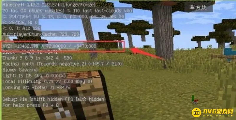 2、记下家的坐标xyz(按F3弹出详细数据),以免迷路找不到家的方向。
