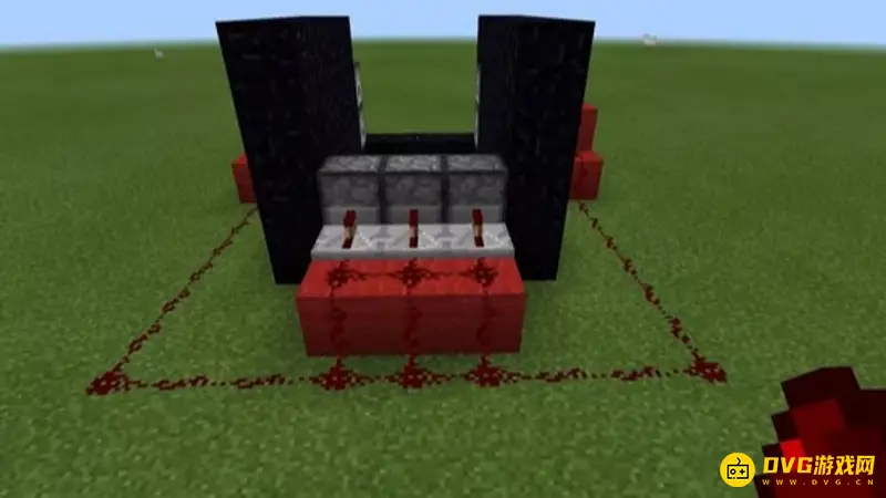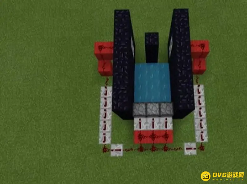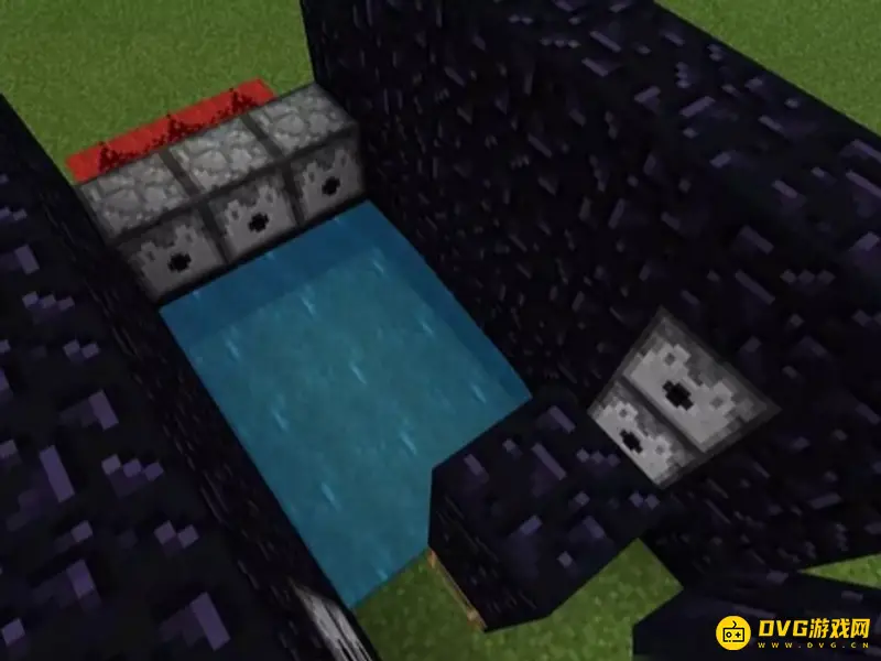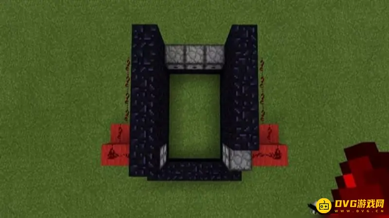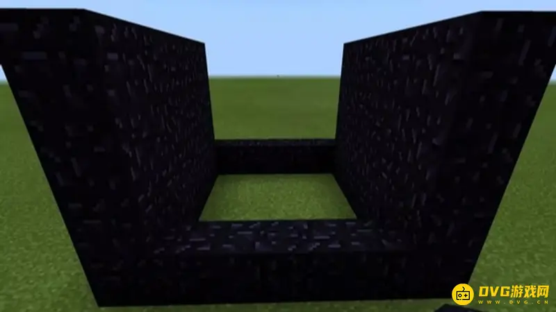 1、制造一个5x5x4的黑曜石框架,然后把顶部和前后两面的黑曜石拆掉,后面要留一个高的黑曜石。