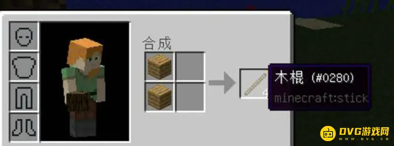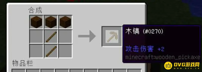 6.右击打开地面上的工作台后,这里是需要使用三个木板和两个木棍来摆成木镐的形状。