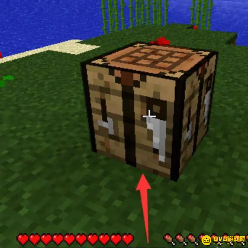 5.将工作台合成以后,把它放在地面上进行下一步操作。