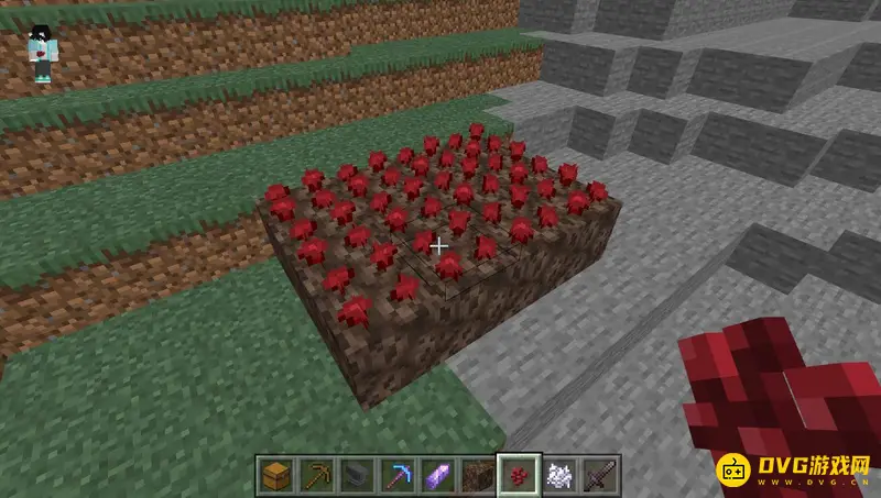 3,然后我们从背包里拿出地狱疣,也就是下界疣,点击鼠标右键把地狱疣种植在灵魂沙上面。