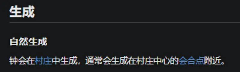 在游戏中铃铛就是钟,钟是不可以合成的,只能在村庄中自然获得钟,每个村庄中都会有一个钟,玩家需要使用镐来获取钟,击钟可以让钟发出声音,并且使用有伤害的弹射物也能敲响钟。