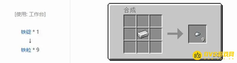 2,然后在中间放上一个铁锭,然后就可以成功获取9个铁粒了。