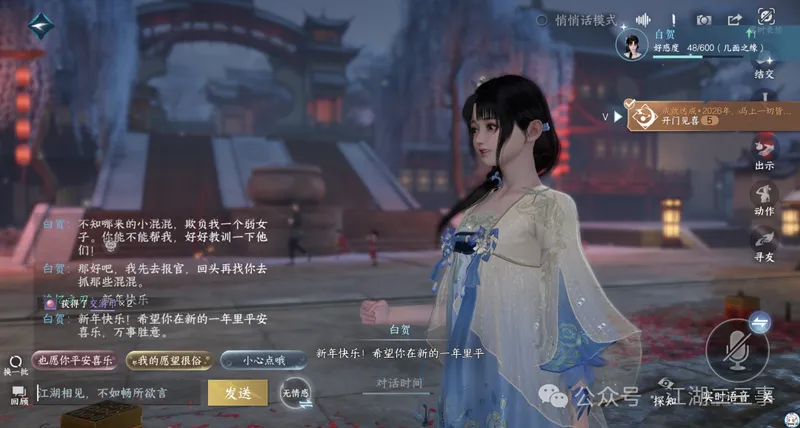 3.开门见喜和任意NPC闲聊时发送“新年快乐”解锁成就