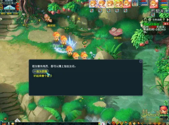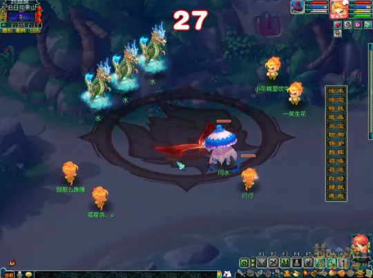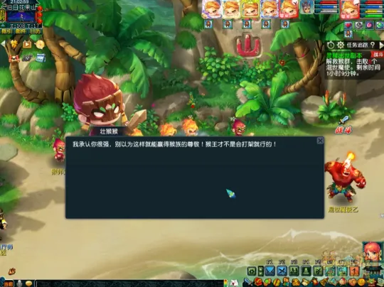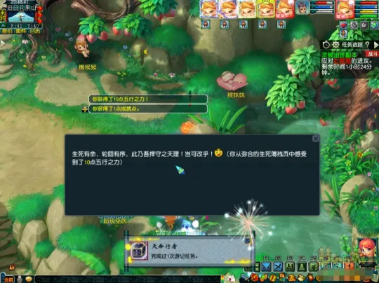 玩家化身为一颗灵石石卵,经历诞生、自我觉察,从一块顽石到出世到立志成为猴王! ①副本简介 副本类型:普通副本等级要求:≥50级 人数要求:5人 传送NPC:水行裂隙(五行山99,97) 副本流程:灵石初成—>灵猴出世—>解救猴群—>猴群特训—>平衡水灵 其他说明: 1、死亡计算正常死亡损失; 2、灵猴出世副本中无法使用变身卡; 3、奖励不受双倍/精修影响,受回梦丹、回梦饮影响; 4、副本限时120分钟,下线和掉线任务不消失,超时则任务失败。 ②副本流程 特别说明:本副本资料来源于测试服,一切以全服放出为准。 一、进入副本 副本开启后,玩家通过水行裂隙(五行山99,97)进入副本;也可直接在副本官员(长安城150,184)快速创建副本后直接传送进入。 二、灵石初成 进入副本后,玩家变身为黑乎乎的小灵石,全队需要收集15个天地灵气。单人任务,玩家点击周围散落的“天真地秀”或“日月精华”即可完成1次收集,每个玩家最多汲取5个天地之灵。 收集完成后,玩家需组队前往灵石裂隙(灵石幻境106,12),进入战斗打碎灵石裂隙找到出口。 怪物说明: 灵石裂隙(巨石守卫昼造型):对随机目标使用普通攻击,伤害较低。 灵石裂隙(巨石守卫夜造型):对随机目标使用横扫千军,伤害适中。 击杀攻略: 因为怪物整体抗性、血量较低,难以对玩家造成过多威胁,使用须弥召唤兽即可快速击飞敌人,总体难度较低。 战胜灵石后,玩家还将获得属性提升。 三、灵猴出世 战胜灵石裂隙后,玩家变身为石猴来到世间。为学习怎么当一只猴子,石猴开始模仿周围猴子的动作。队长与小猴子交谈,并作出相应动作即可完成任务。 虽然石猴学会了不同动作,但因为是从石头里蹦出来的,被其他的猴子当成了妖怪,需要应对壮猴猴(旧日花果山6,45)的进攻。 怪物说明: 壮猴猴:使用技能神针撼海,伤害较低。 跟班小猴:对随机目标使用当头一棒或泼天乱棒。当目标为召唤兽时,伤害较高。 击杀攻略: 怪物整体抗性、血量较低,虽然对召唤兽伤害较高,但是对于玩家难以造成过高伤害,可以轻松战胜,总体难度较低。 虽然战胜了壮猴猴,石猴却受到其他猴子的排挤,只能与虎豹狼虫为友。一日与猴群发生冲突,需要击败猴师兄(旧日花果山94,15)。 怪物说明: 小猴子:对随机目标使用当头一棒。当目标为召唤兽时,伤害较高。 击杀攻略: 小猴子虽然数量较多,但血量极低。使用须弥召唤兽配合法系门派可以快速实现清场,总体难度较低。 战胜猴师兄后,去问问壮猴猴(旧日花果山112,17),问他服不服气。 四、解救猴群 混世魔王兵团趁猴长老不在时入侵花果山,为保护猴群,主动挑战混世魔使。玩家需战胜5个混世魔使,怪物坐标(旧日花果山73,25)(旧日花果山124,11)(旧日花果山77,21)(旧日花果山50,27)(旧日花果山124,35)。 怪物说明: 混世魔使(混沌兽造型):使用技能地狱烈火,伤害较低。 混世魔使(炎魔神造型):使用技能烈火,伤害适中。 击杀攻略: 怪物抗性较低、血量适中,玩家与召唤兽联手即可轻松击杀。 战胜混世魔使后,赶紧迎接混世魔王的挑战吧。 怪物说明: 混世魔王:第一回合使用技能牛劲,之后使用技能飞砂走石,伤害较高。 混世魔使:使用技能烈火或普通攻击,伤害适中。 击杀攻略: 怪物抗性较低、血量适中,建议优先击杀混世魔王,整体难度较低。 五、猴群特训 战胜混世魔王后,猴长老(旧日花果山39,100)刚好赶回,与他交流看看发现了什么吧。 原来猴长老发现了新的栖息之所,为了加入远征小队,快去参加芭将军(旧日花果山114,16)的特训吧。 特训分为游水、赛跑、爬树,共3个项目。每个项目需要一名玩家出战,已参战过的玩家无法重复出战。 游泳特训 怪物说明: 水:使用技能龙腾或龙卷雨击,伤害较低。 溺水:使用特技破血狂攻,伤害适中。 击杀攻略: 怪物每回合会召唤3个溺水,溺水无法被攻击,玩家只需击败3个水即可获取胜利。虽然怪物抗性、血量较低,但是建议由输出门派出战。 赛跑特训 怪物说明: 跑快快、快快跑:对随机目标使用普通攻击,伤害较低。 击杀攻略: 最简单的一项特训,怪物只会使用普通攻击,注意在3回合内击杀即可。 爬树特训 怪物说明: 小树:使用随机五行小法,击飞后可获得1分。 大树:使用随机五行群法,击飞后可获得2分。 参天巨树:使用普陀山五行法术,击飞后可获得5分。 小猴:使用技能神针撼海。 击杀攻略: 玩家需要和小猴比赛,获得更高的分数才能取胜。建议携带攻宠出战,第一回合攻宠击杀大树,第二回合攻宠击杀参天巨树,确保得到7分。 完成3项特训后,去接受芭将军(旧日花果山114,16)的考验吧。 怪物说明: 芭将军:使用技能神针撼海,伤害较低。 猴巫师:使用随机五行群法,伤害较低。 猴精锐:对随机目标使用特技破血狂攻,伤害适中。 猴先锋:使用技能云暗天昏,伤害极高。 击杀攻略: 建议优先击杀猴先锋,避免给人物造成过多伤害。其他单位伤害较低,可以随意选择击杀顺序,总体战斗难度较低。 战胜芭将军后,去接受崩将军(旧日花果山130,57)的封赏吧。 六、平衡水灵 穿上象征勇气的披风,朝瀑布跃去。在瀑布前发现有灵力涌动,进入小游戏接受这股力量的召唤吧。 小游戏共有3种类型:旋转解码、拼图、写字。 1、旋转解码 分别点击4个碎片可以使每个碎片按一定规则旋转,最后拼成“水”字即可成功通关。 2、拼图 点击交换4个拼图碎片的位置,最后拼成“水”字即可成功通关。 3、写字 在30